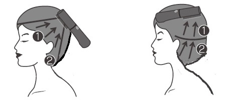 頭頂部(つむじらへん)からスタートし、生え際に向かって支点を変えていきます。これを2往復します。